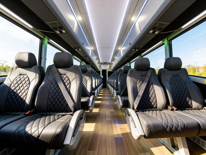+Our minibuses (15–35 passengers) feature cushioned high-back seats, powerful climate control, and overhead storage bins, making them perfect for local employee shuttles in Silicon Valley. Full-size charter buses (40–56 passengers) add critical amenities for long hauls, including onboard restrooms, high-speed WiFi, individual power outlets, and flat-screen TVs for travel to San Francisco or Lake Tahoe. Sprinter vans (6–15 passengers) offer easy curbside boarding, leather seating, and USB charging ports for quick airport runs to SJC. Party buses (10–50 passengers) are equipped with wrap-around seating, premium sound systems, and LED lighting for wedding parties and celebrations. All vehicles are equipped with seat belts and professional drivers for maximum safety on Highway 17 and local expressways.